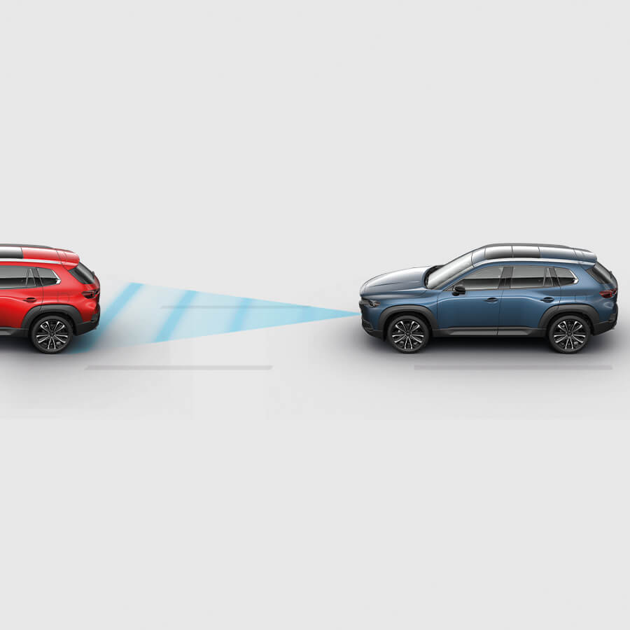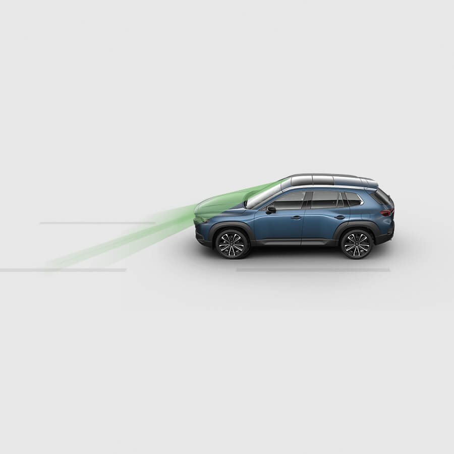 Te ayuda a reducir la fatiga en caso de congestión vehicular. Cuando está activo, controla automáticamente la velocidad de tu Mazda CX-50, para que mantengas una distancia adecuada con el vehículo de adelante, funciona por encima de aproximadamente 3 km/h y hasta 145 km/h. A velocidades menores a 55 km/h, también asiste la dirección, para mantener la posición debida en el carril, a través de las curvas. Si no se detectan las líneas divisoras de los carriles, el sistema te ayuda a mantener la misma velocidad del vehículo de adelante.